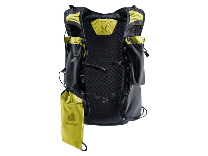 - Soft flask pouches on the shoulder straps