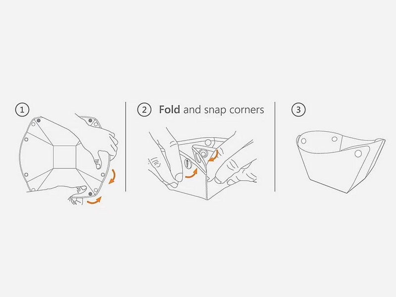 Bowl – Assembled 14 x 15.4 x 8.8 cm, Flat 25.5 x 25.5 cm, Weight 40g