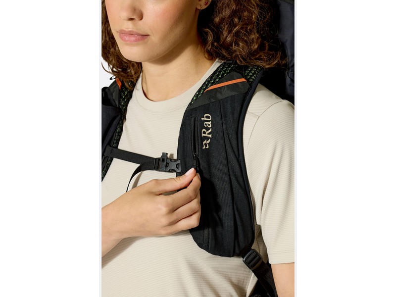 - Harness is perforated for extra breathability, with an easy-access chest pocket and soft flask storage.