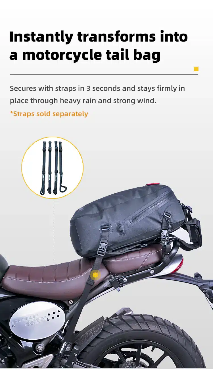 - Easy attachment to your motorcycle with included straps